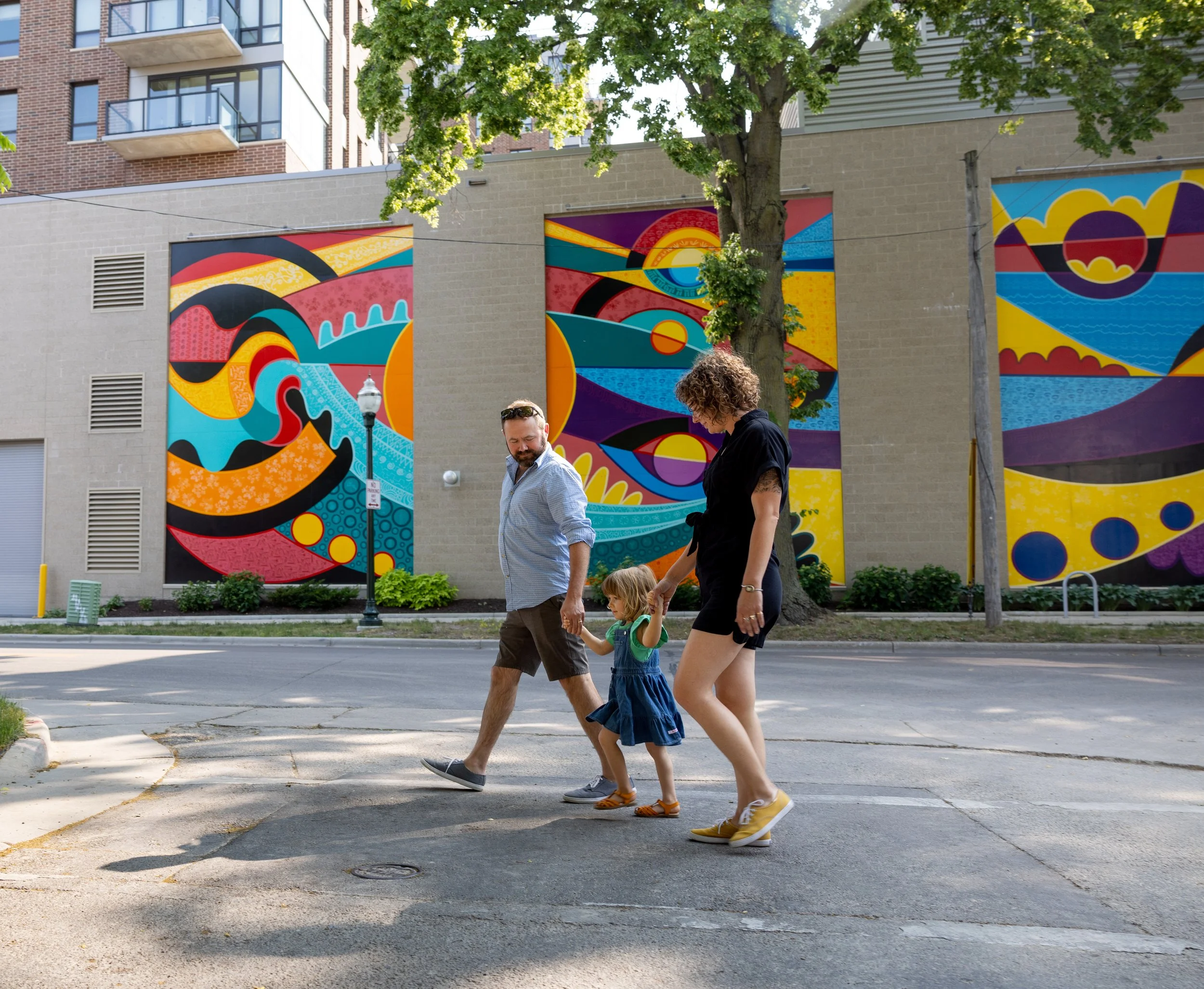 The design process for the MYArts mural began in 2018 and evolved through multiple stages, shaped by community feedback, input from the MYArts committee and board, and the unique challenges of producing a community mural during a global pandemic.